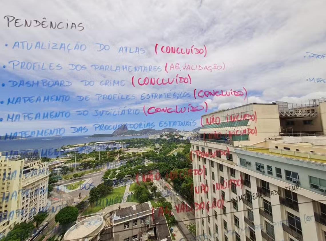 O material apreendido inclui ainda listas de pessoas, empresas e operações, além de referências como “mapeamento do Judiciário”, “mapeamento das Procuradorias estaduais”, “mapeamento do ministério” e “mapeamento dos portos”. Segundo investigadores, trata-se de um levantamento interno produzido pela própria Refit.
