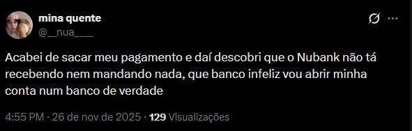 Uma falha no aplicativo do Nubank fez alguns clientes não conseguirem fazer ou receber PIX nesta quarta-feira (26). De acordo com informações divulgadas pelo portal downdetector, mais de 200 reclamações já foram registradas até às 16h.