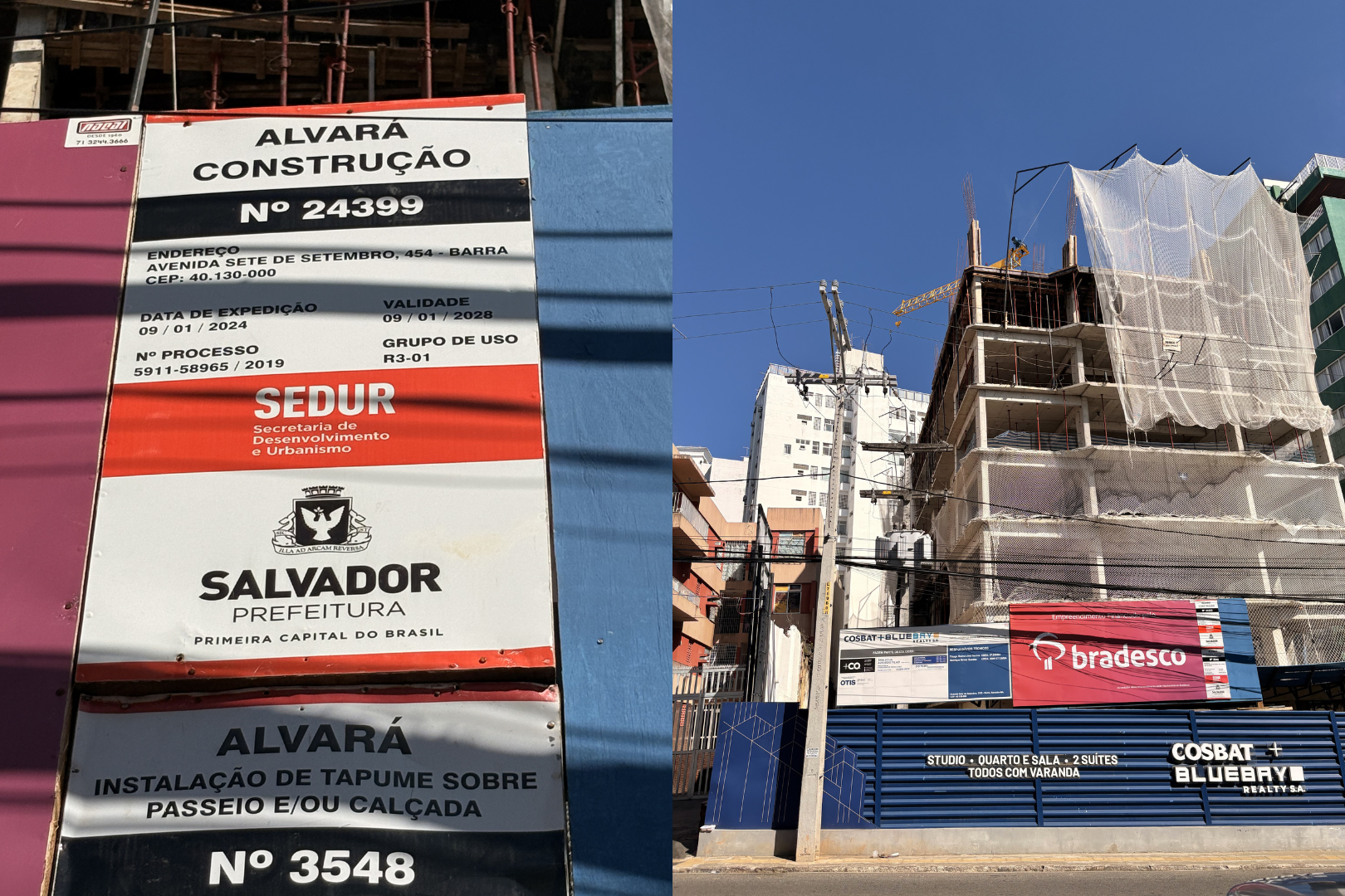 O Farol da Bahia esteve no local e constatou que as obras estão ocorrendo. O novo alvará de construção foi expedido pela Secretaria Municipal de Desenvolvimento e Urbanismo (Sedur) em 09/01/2024 e é válido até 09/01/2028. Confira: