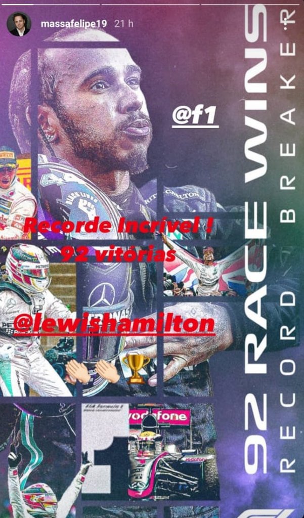 Felipe Massa, que lutou até as últimas curvas com Hamilton pelo título de 2008, também fez questão de novamente homenagear o maior vencedor da F1. Além disso, o ator americano Samuel L Jackson também celebrou a conquista do piloto: “Esse irmão aqui é o maior vencedor da história da F1, 92 vitórias e contando. Parabéns, irmãozinho, continue arrasando!”, escreveu no Twitter.
