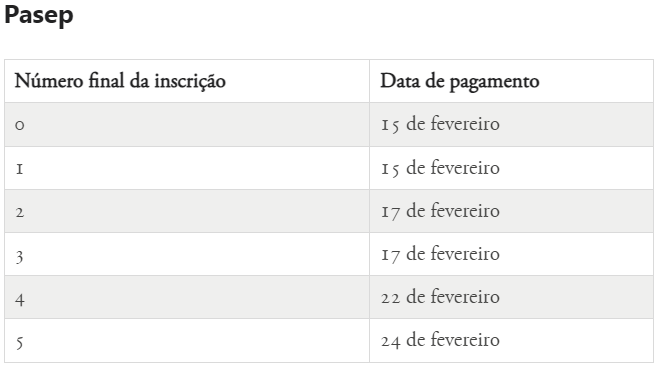 Pagamentos começam a ser feitos em 8 de fevereiro