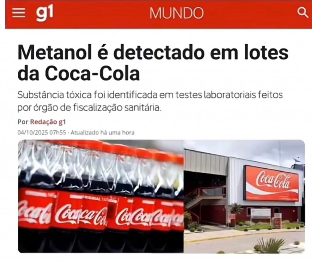 "Garrafas de Coca-Cola estão sendo encontradas contaminadas com metanol no Brasil, colocando a vida de milhares de consumidores em risco. O metanol, uma substância altamente tóxica, pode causar cegueira irreversível, falência dos órgãos e até levar à morte. Já são mais de 40 vítimas, com oito mortes confirmadas. Casos de intoxicação foram registrados em estados como São Paulo, Rio de Janeiro e Minas Gerais, com várias vítimas internadas", declarou.