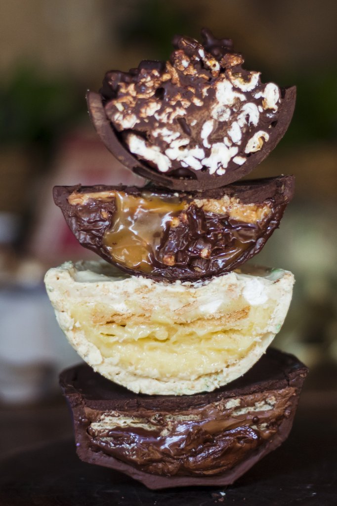Meio ovo com recheio de torta de limão e praliné (700gr): R$ 109,00