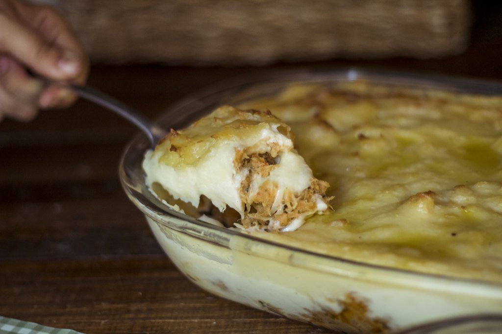 Bacalhau gratinado (3 pessoas/1,8kg): R$ 108,00