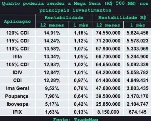 Já quem opta pela Caderneta de Poupança, teria um retorno mensal de R$ 3,1 milhões.