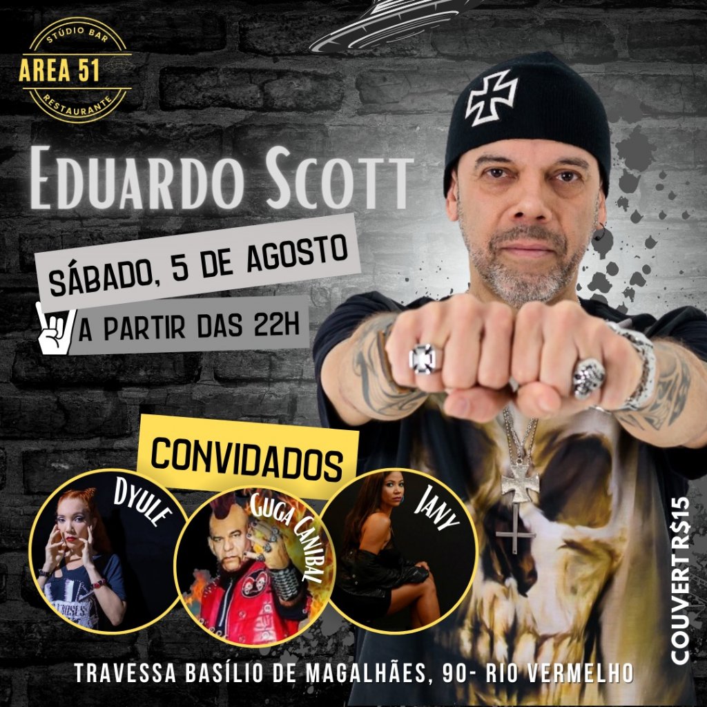 Não é pra qualquer um completar 42 anos de carreira na música, com todo gás. Estamos falando do músico baiano Eduardo Scott ( ex Camisa de Vênus ) que apresenta seu novo show com duas horas de duração dia 05 de agosto no Rio Vermelho. No repertório músicas e sucessos das bandas das quais fez parte, passando pelo Gonorreia & Camisa de Vênus incluindo também sucessos das bandas e artistas que influenciaram sua carreira como Raul Seixas, Titãs, Raimundos, Ira, Billy Idol, Ramones, Rita Lee entre outros.E para abrilhantar ainda mais a noite, Scott convidou para participação no show três artistas atuantes da cena em roqueira de Salvador, sendo eles o vocalista " Guga Canibal " um dos maiores representantes do Punk Rock da cidade, a vocalista da banda Espinhos e Rosa " Dyule ", e " Jany " que vem obtendo bastante destaque na nova safra de cantoras roqueiras da cidade. A banda " Scott and Friends " é composta por " Ives Fers" baixo, " Betto Sambora " guitarra,solo " Beto Espínola " guitarra solo e " Rafael Nogueira " na bateria. Serviço: