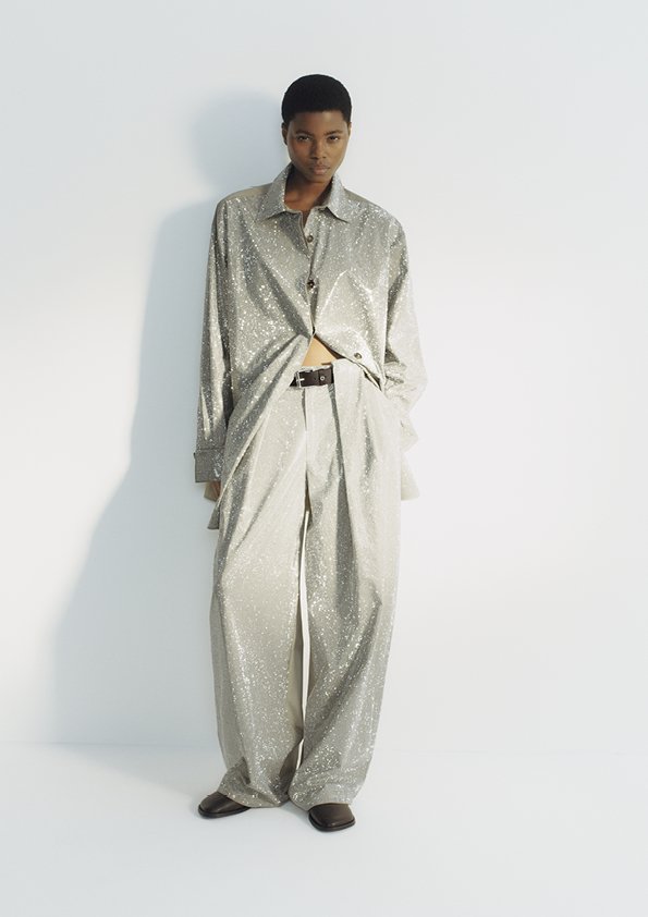 A coleção une passado e presente, combinando assinaturas atuais muito queridas, como camisas oversized, trench coats amplos e alfaiataria precisa, com peças icônicas e lúdicas do início do acervo de McCartney, incluindo estampas com pedrarias e camisetas com slogans.