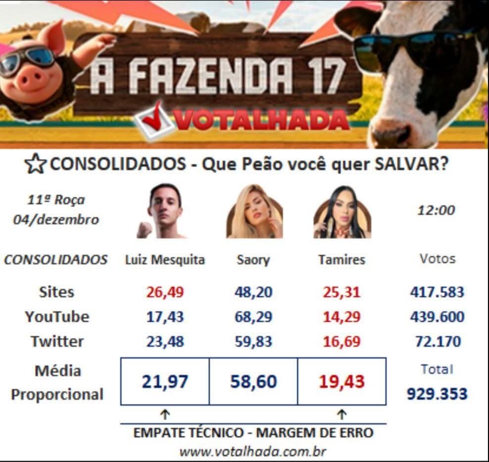 Primeiro parcial das Enquetes, já apontam Tamires eliminada!