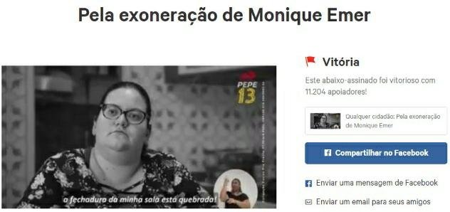 Após os comentários terem se tornado públicos e viralizado nas redes sociais, um abaixo-assinado foi criado com o objetivo de fazer uma solicitação pela exoneração da funcionária municipal. Criado no último dia 5 de dezembro, a lista ultrapassou a meta de 10 mil e foi concluída com 11.204 assinaturas de pessoas que apoiam a saída da profissional.