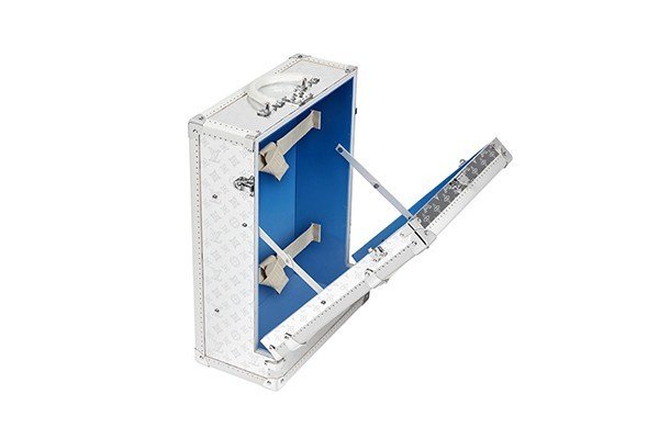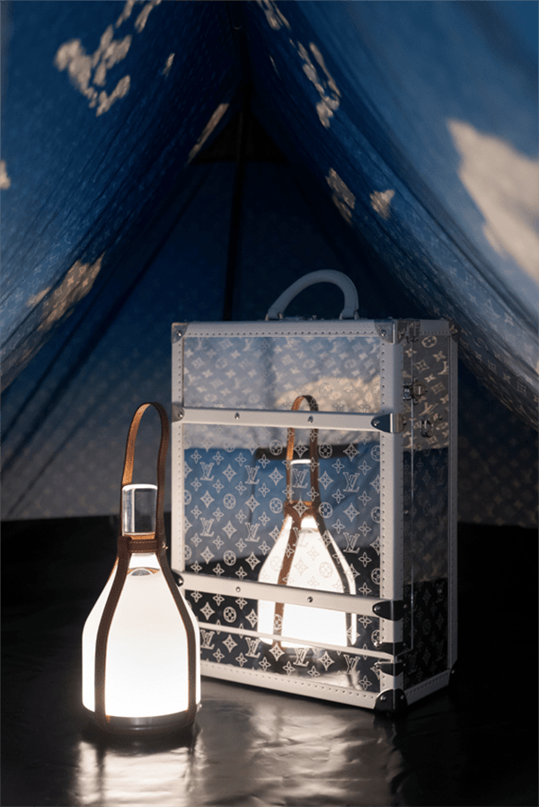 A Louis Vuitton lança duas mochilas e uma barraca com a tradicional estampa do monograma LV em tons de marrom e a estampa de nuvens no interior. As bolsas foram inspiradas nos baús de viagem da grife, possuem acabamento em couro, alças ajustáveis e abertura através de uma dobradiça, e não de zíper como as mochilas convencionais.