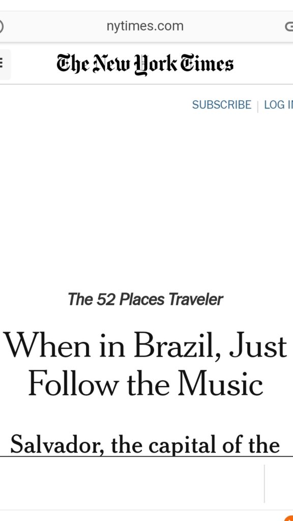 O jornalista Sebastian Modak, que esteve circulando em Salvador durante o São João, produziu a matéria "When in Brazil, Just Follow The Music", para o The New York Times, onde destaca as suas andanças pelo Pelourinho, Porto da Barra e ao Terreiro do Gantois. A publicação saiu no poderoso jornal americano no dia 2 de julho.