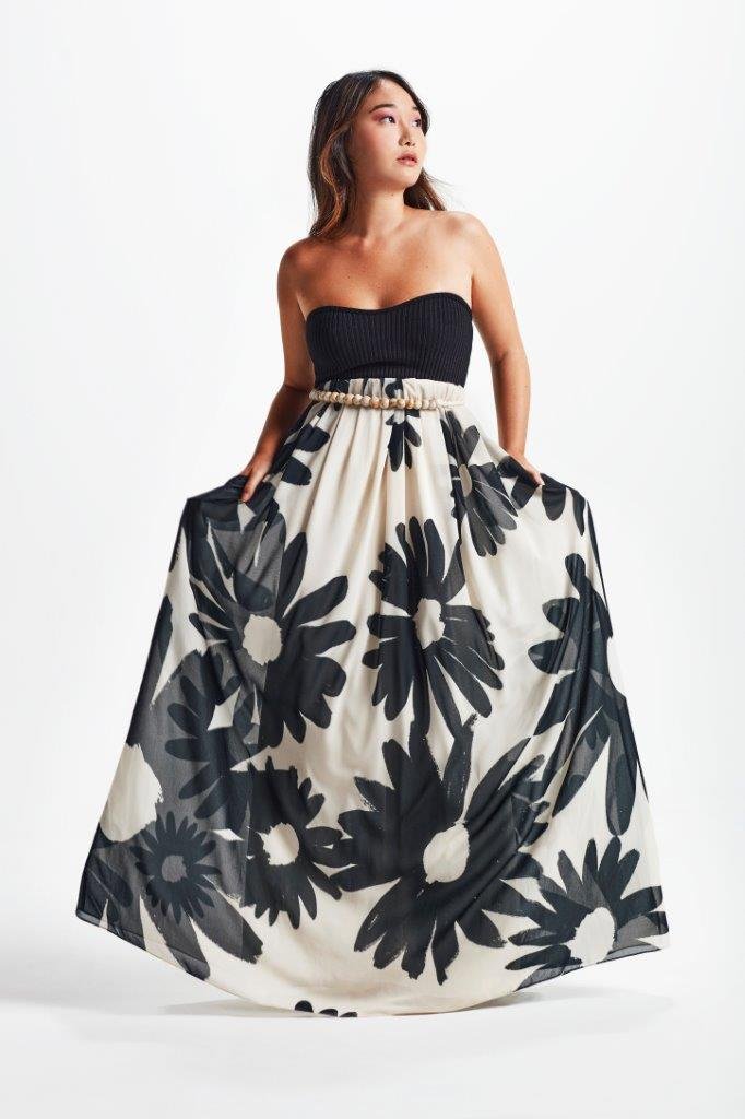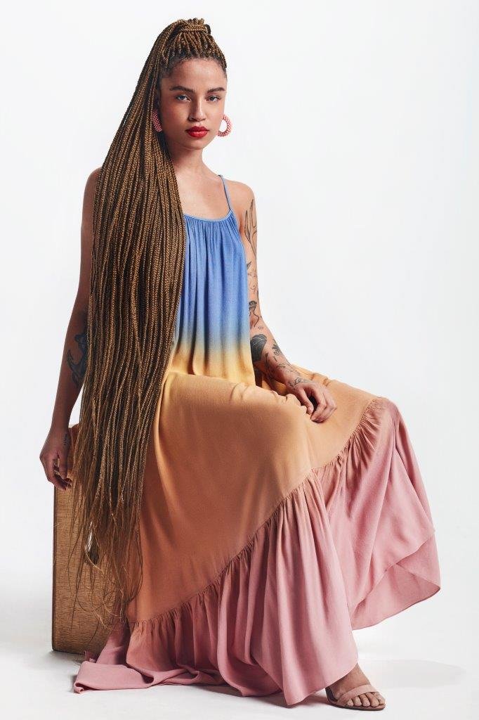 A partir de vestidos amplos, saias longas e tops leves, a coleção transforma tecidos fluídos em peças que dão o tom perfeito à estação. A paleta de cor flutua entre tons pastel e claros, entregando ainda mais suavidade e delicadeza à coleção.