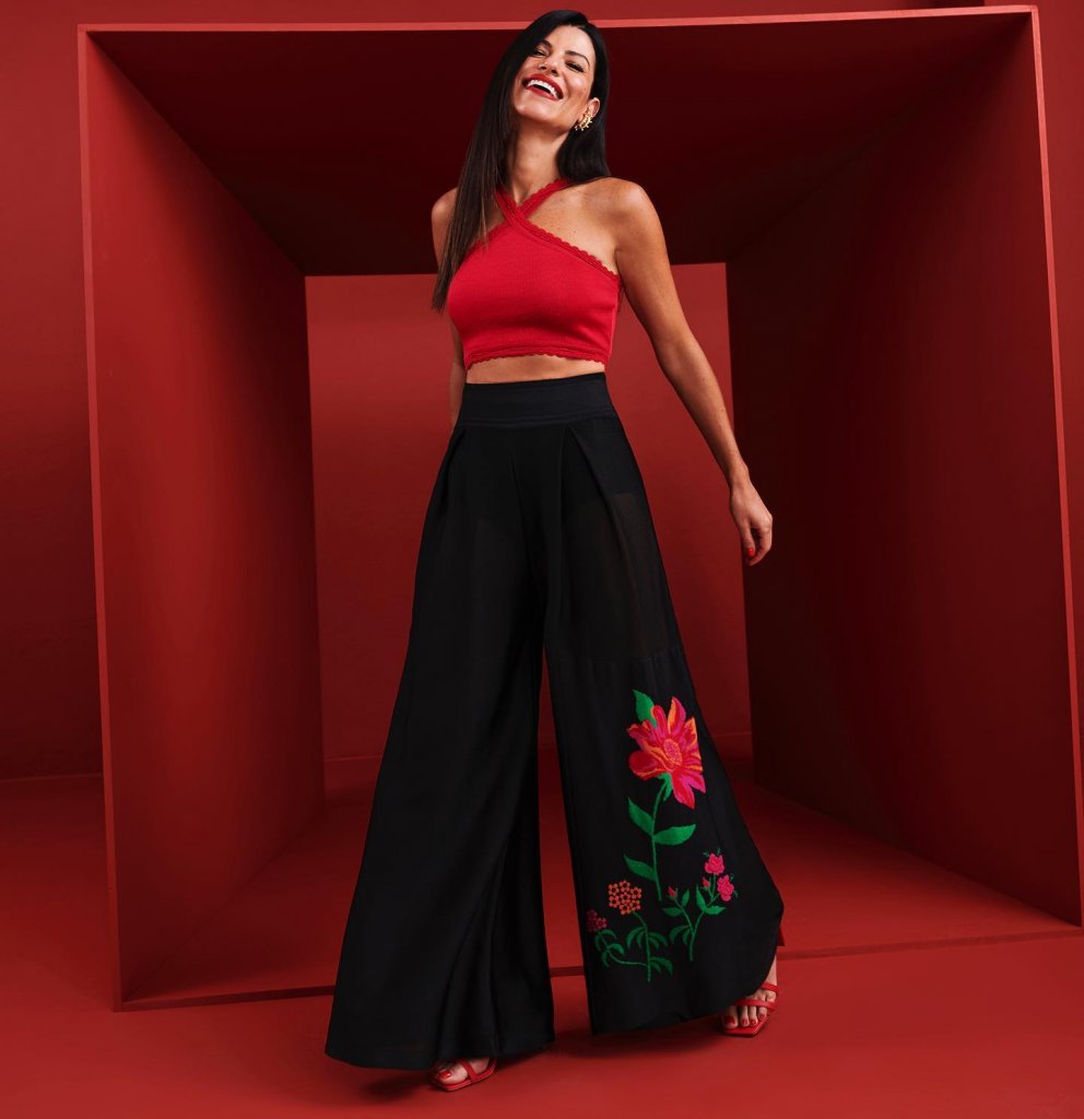 Os eventos, festas e feriados mais importantes do ano acontecem em dezembro no Brasil, poucos dias depois do início do verão. Por isso, investir em peças que te deixem mais leve e confortável é essencial. A dica é investir em calças pantalonas em tricot, que são capazes de trazer um toque fresh sem perder a elegância. Além do mais, se você procurar deixar o visual mais completo e delicado, é permitido usar modelos com bordados nas pernas.