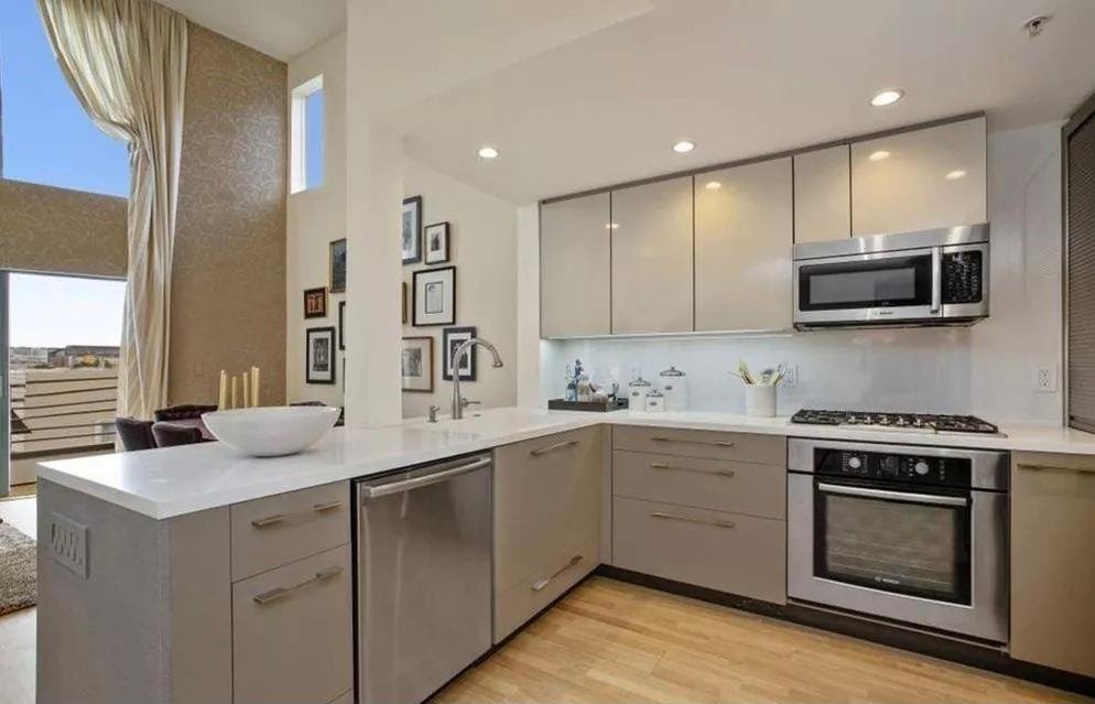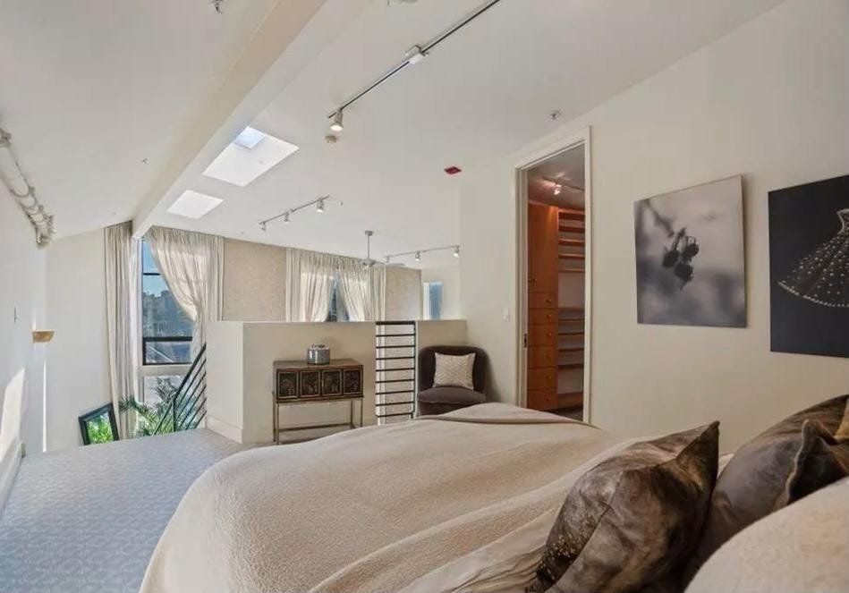Localizado no último andar de um edifício boutique, o apartamento é descrito como um “refúgio elegante” no bairro South of Market.