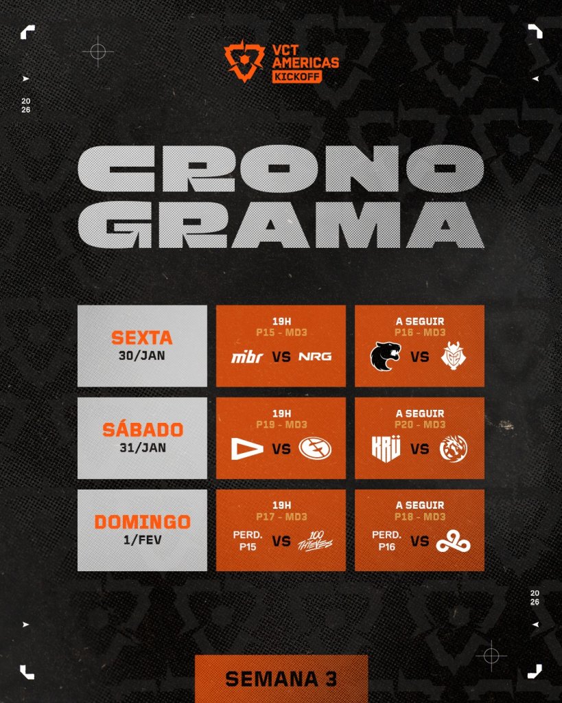• Valorant Champions Tour 2026: terceira semana da competição terá embates eliminatórios entre jogadores brasileiros