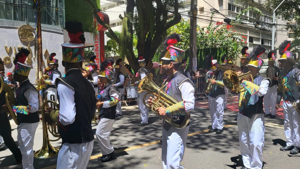 Desfilando pela Banda Marcial de Pirajá (Masp Show), da Escola Municipal Alexandrina Santos Pita, Felipe de Jesus Santos comemora o retorno das atividades: “É muito bom, muito gratificante. Desde o 2 de julho a gente vem ensaiando para a comemoração dos 200 anos de Independência do Brasil. Eu toco bombardino. São mais de 63 alunos participando do desfile, todos da escola”, afirmou o estudante, em entrevista ao Farol da Bahia.