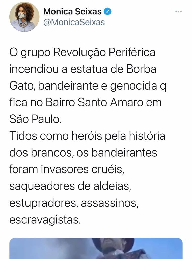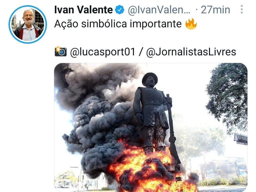Manifestantes do Ato contra Bolsonaro, neste sábado (24), atearam fogo em monumento que homenageia o bandeirante Borba Gato, na cidade de São Paulo. Lideranças e movimentos de esquerda comentaram o acontecimento por meio das redes sociais.