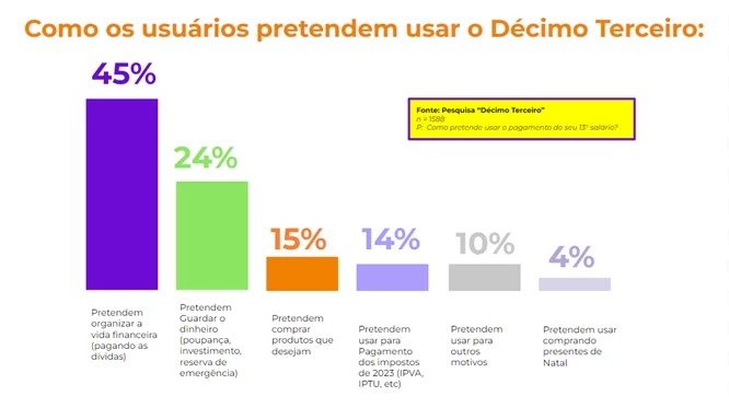 Já 24% planejam investir ou guardar o dinheiro extra para uma reserva de emergência, 15% comprar produtos que desejam e 14% pagar os impostos de início de ano. Os dados estão em linha com outros levantamentos que mostram que o brasileiro está com dificuldade de fechar as contas.