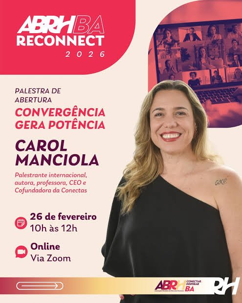 Após anos acompanhando relatórios que apontam as mesmas tendências para o setor, a Associação Brasileira de Recursos Humanos Seccional Bahia (ABRH Bahia) propõe uma reflexão: o que falta para que essas tendências saiam do papel e se tornem prática? A resposta é convergência. É com esse propósito que a entidade vai realizar, na quinta-feira (26), das 10h às 12h, via Zoom, o ABRH Bahia RECONNECT 2026. O encontro vai contar com palestras de Carol Manciola e Genesson Honorato, nomes de destaque nacional, e marcar o início do calendário anual da instituição. Seu objetivo é alinhar visão, apresentar projetos estratégicos, divulgar o calendário oficial de eventos e compartilhar os movimentos que irão direcionar o RH baiano ao longo de 2026.