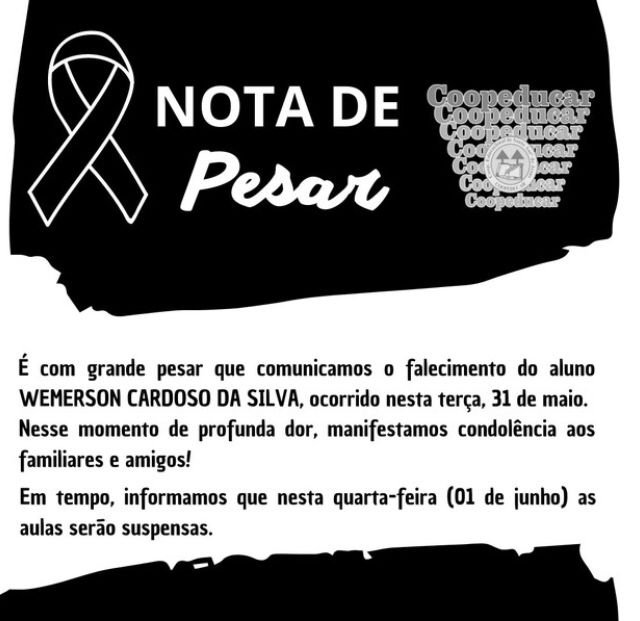 Em luto, a escola onde a vítima estudava suspendeu as aulas nesta quarta-feira (1º)
