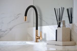 A tonalidade Rose Gold, uma mistura de rosa envelhecido e cobre, veio para ficar no universo do design de interiores. Versátil, pode ser empregada em diversos detalhes na decoração de ambientes. Que tal usá-la em uma torneira repleta de estilo, combinada com preto, em uma proposta sofisticada e inovadora? Foi a partir desse conceito que a Lorenzetti lança a Torneira Multiuso Loren Flex Rose Gold e a Torneira Loren Joy Rose Gold para uma decoração ainda mais elegante e funcional. Confira: