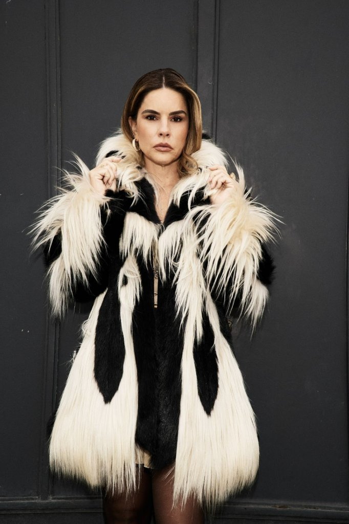 O encerramento da semana aconteceu no desfile da Valentino, onde Ana Paula optou por um look de forte impacto visual. Ela escolheu um vestido curto em tons claros, com camadas delicadas e acabamento artesanal, que valoriza a feminilidade da silhueta. A produção foi arrematada por um casaco de pelos em preto e off-white, usado de forma despretensiosa, criando contraste e dramaticidade, além de botas pretas de cano médio com acabamento brilhante, que trouxeram um toque contemporâneo ao visual. Óculos escuros completaram a proposta sofisticada e fashionista.