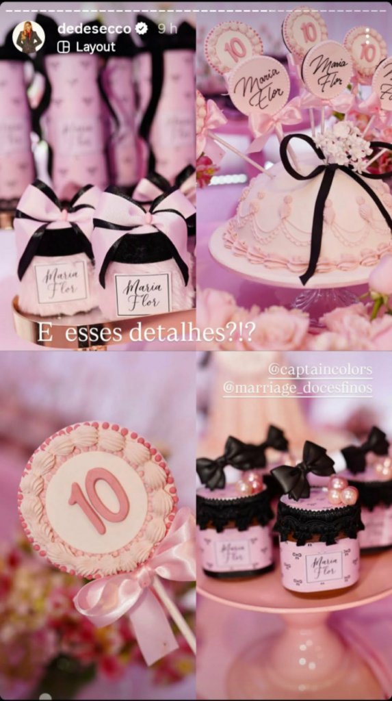 A filha de Deborah Secco e Hugo Moura, Maria Flor, ganhou uma festa luxuoso para os seus 10 anos. Neste domingo, 07, a atriz postou fotos do evento da herdeira e exibiu os detalhes da decoração, que foi feita com detalhes vintage. Na hora dos parabéns, Deborah Secco apareceu ao lado da filha e de seu ex-marido, Hugo Moura, que teve um clique abraçado com a herdeira postado na rede social da ex-mulher.