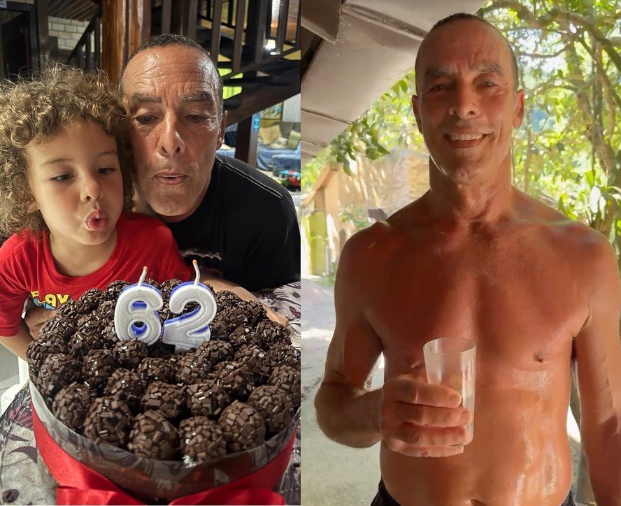 Paulo Zulu celebrou a chegada dos 62, ao lado do filho Kiron de 3 anos,  fruto de seu atual casamento com a modelo Elaine Quisinski, de 37. O bonitão comemorou a data na Guarda do Embaú, em Santa Catarina, onde mora atualmente.         Pai de outros dois filhos, Patrick, de 22 anos, Derek, de 20, Paulo Zulu comemora também a cura de um câncer, descoberto há quase quatro anos. Logo depois do diagnóstico, o ex-modelo passou por uma cirurgia para a retirada de um tumor maligno na bexiga. Em 2023, ele voltou a ser diagnosticado com outro tumor na mesma região e passou por um novo procedimento cirúrgico. No ano passado, Zulu disse estar curado da doença.