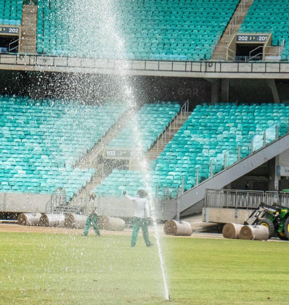 A Casa de Apostas Arena Fonte Nova concluiu o plantio do novo gramado do estádio, na noite de sexta-feira (10). Após polêmicas, principalmente envolvendo reclamações do técnico do Palmeiras, Abel Ferreira, que após perder para o Bahia criticou o gramado, foram iniciados ajustes, na segunda-feira (6), e finalmente as obras foram concluídas na sexta.