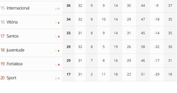 No momento, o Leão, que soma 34 pontos, precisaria somar mais 11 pontos para continuar na primeira divisão. Isso significa que teria que vencer mais três partidas e empatar uma das seis partidas que ainda restam na Série A.