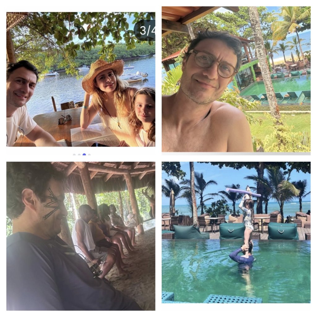 O ator Gabriel Braga Nunes está curtindo as maravilhas de Caraíva, no Sul da Bahia. Ele está acompanhado da esposa Isabel Nascimento e da filha caçula Valentina.