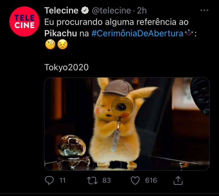 Ao longo das quase quatro horas de evento, as publicações com a pergunta "Cadê o Pikachu?" tomaram conta da rede social. "Não me conformo que até agora não vi nenhum Pikachu nessa abertura das Olimpíadas", escreveu um internauta.