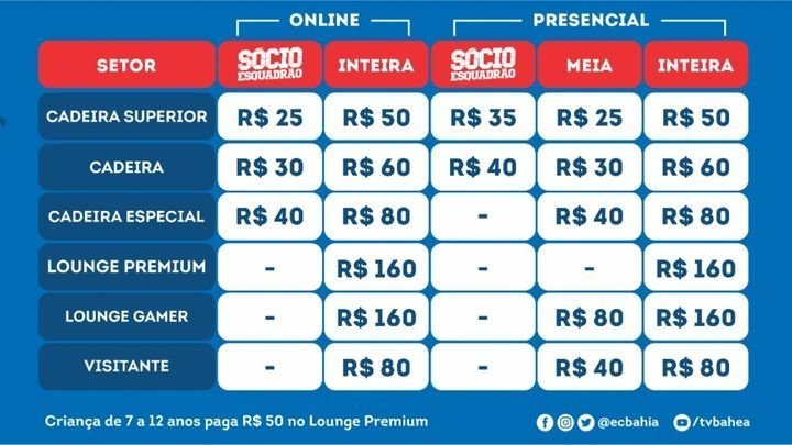 A venda continua no site da Arena Fonte Nova e nos seguintes pontos físicos: bilheteria sul do estádio e nas lojas Turma Tricolor dos shoppings Piedade e Multishop Boca do Rio.