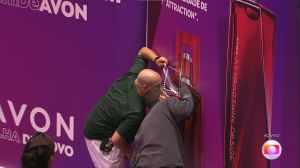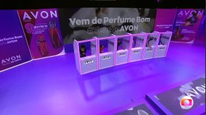 As famosas raspadinhas de Avon, os adesivos que contêm fragrância, conhecidos como discovery, foram parte importante do cenário da prova, que também contou com versões gigantes dos perfumes e da revista de beleza da marca.