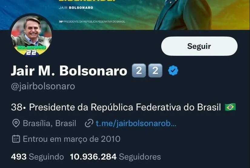 Quem acessou as redes sociais do ex-presidente nesta sexta-feira (14) pode notar a mudança. Até então, Bolsonaro ainda se descrevia na bio dos seus perfis como presidente, além de “capitão paraquedista do Exército brasileiro” e “candidato à reeleição com o número 22”. A imagem de capa também foi alterada para uma imagem foto de Bolsonaro com as palavras “Deus, pátria, família e liberdade”.