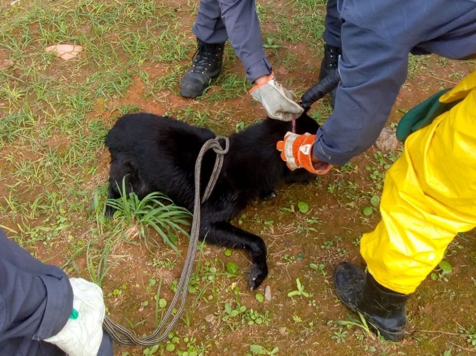 O animal passou por uma avaliação veterinária após o resgate e passa bem.