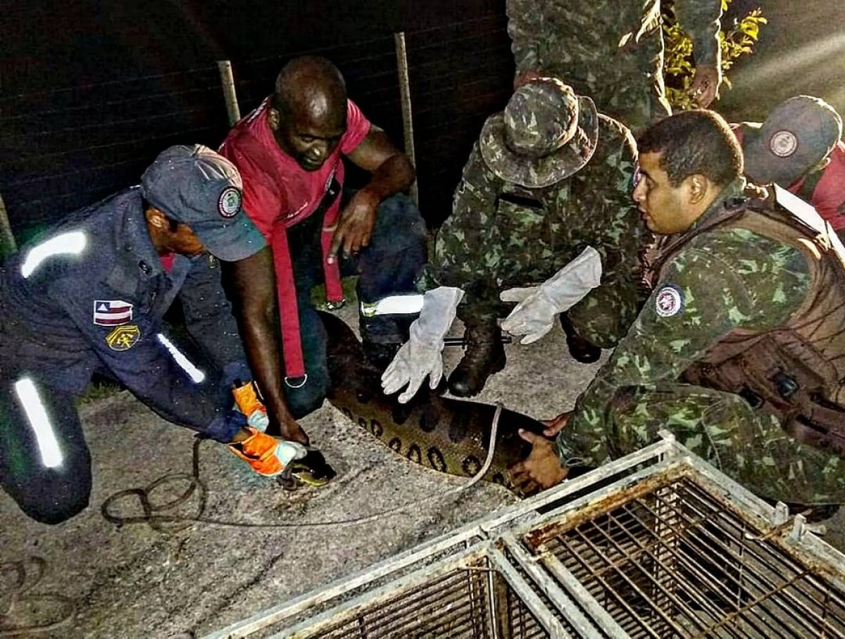 Equipes do Corpo de Bombeiros e da Companhia Independente de Polícia de Proteção Ambiental (CIPPA) resgataram uma sucuri, com sete metros de comprimento e cerca de 130 kg, na cidade de Porto Seguro, no sul baiano.