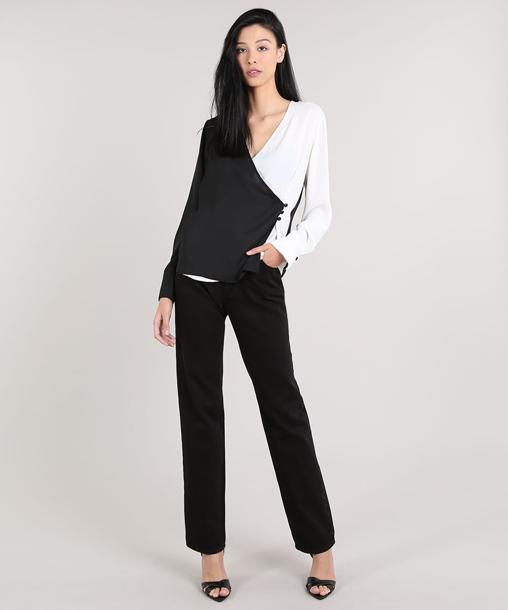 O clássico preto e branco pode ser reinventado e ficar mais fashionista, sim! A marca C&A tem investido em coleções cápsula lançadas todos os meses com novidades para quem busca peças únicas. Um dos exemplos é essa blusa, que parece bem simples à primeira vista, mas tem um detalhe lateral que faz toda a diferença!