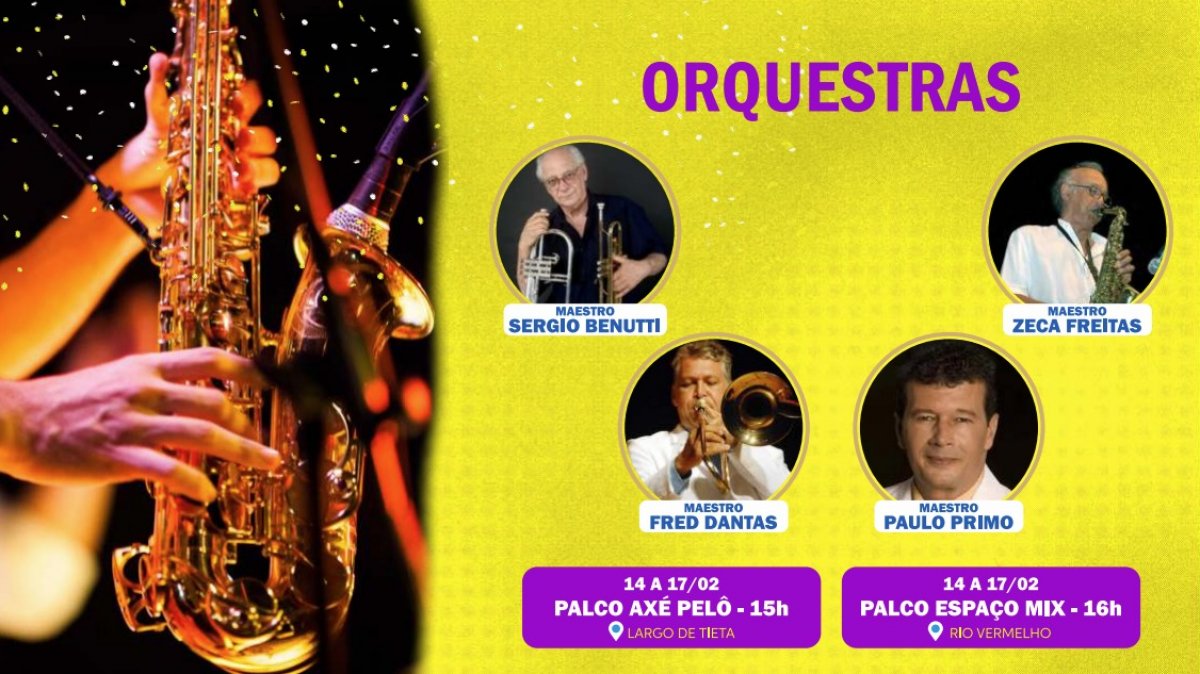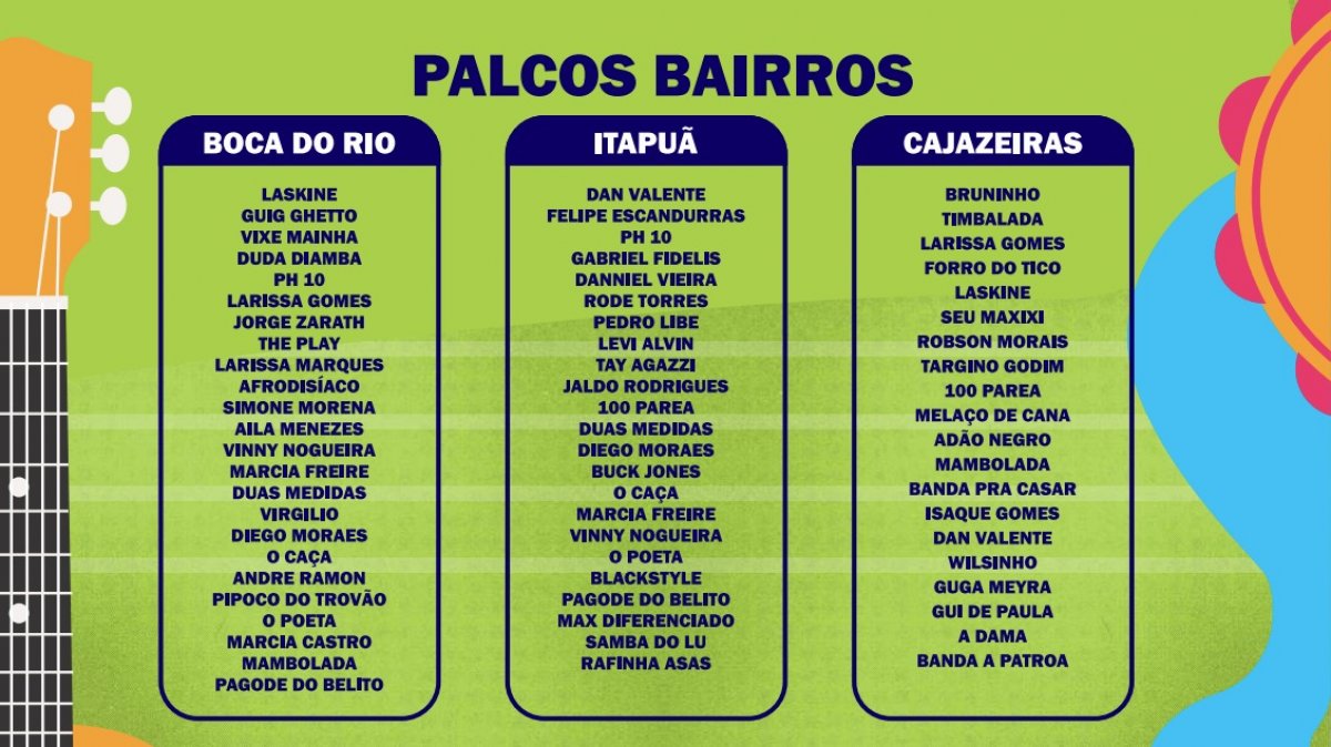 Além destas atrações, no mesmo período, os blocos afro também desfilarão no circuito Osmar com o apoio da prefeitura: