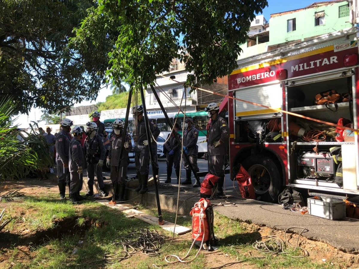 Cavalo cai em galeria de esgoto em Salvador e é resgatado por bombeiros