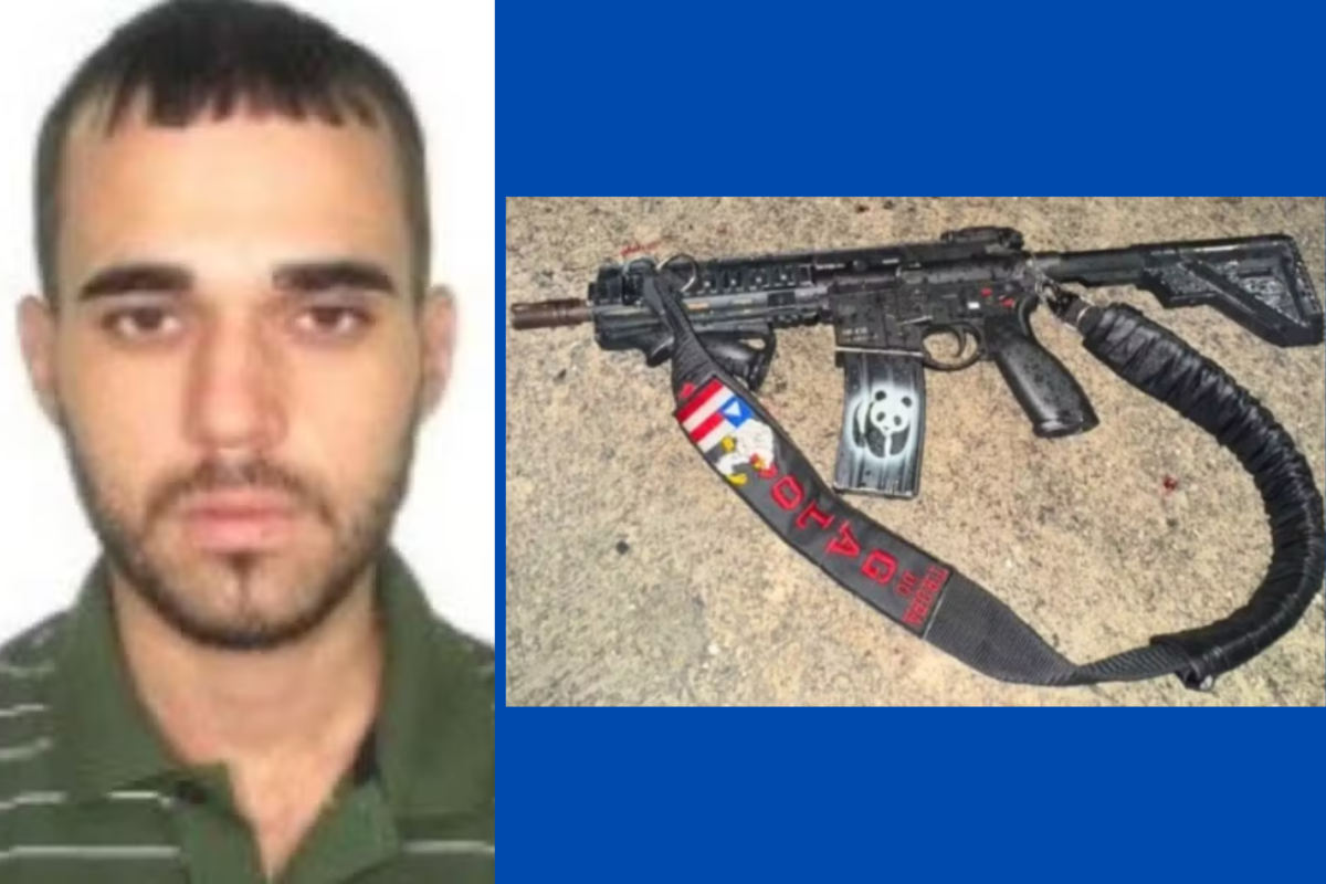 Fuzil com bandeira da Bahia pertencia a Júlio Silva | Foto: Reprodução/Redes Sociais | Reprodução/TV Bahia