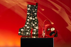 A promenade leva a duas áreas adicionais que destacam temas-chave da coleção Outono/Inverno: a cápsula Greekaba e novas interações da bolsa Carasky da Maison. Apresentados em pódios de concreto, que homenageiam o universo criativo do arquiteto, os estilos da Greekaba são um convite a Atenas e às ilhas Cíclades da Grécia para participar das aventuras de Christian Louboutin e Miss Tependris, personagem fictícia imaginada por Konstantin Kakanias, artista grego amigo do designer. Um segundo espaço revela algumas novas interações para a família de bolsas Carasky. Inspirada na paixão de Christian Louboutin por pedras preciosas e coroas, a seleção é expandida com novos mini buckets e estilos de crossbody, todos acentuados pelos icônicos enfeites de grandes dimensões semelhantes a joias.