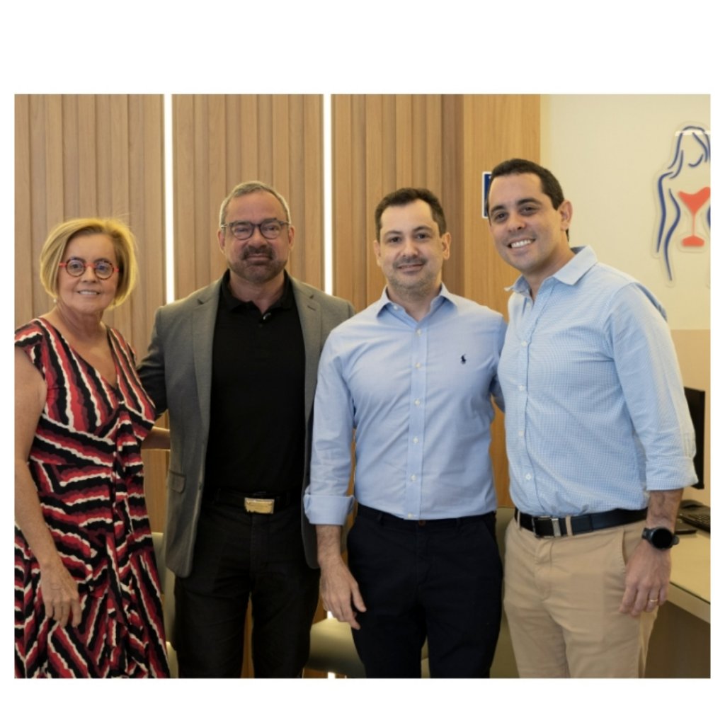 Drª Edza Brasil (fundadora do Grupo Singular Pharma); Dr Jorge Valente e Dr Igor Brandão (diretores técnico e executivo da Clínica da Menopausa) e Bruno Brandão (diretor executivo do Grupo Singular Pharma) | Foto: Diogo Reis | OM3 Criações