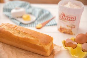 - Corte a goiabada em pedaços, passe-as pela farinha de trigo Finna e distribua pedaços de goiabada por cima da massa. Leve para assar em forno pré-aquecido a 180 ºC por aproximadamente 40 minutos.