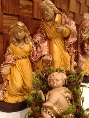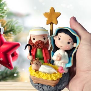 O presépio de biscuit é composto por sete peças com modelagem feita à mão.