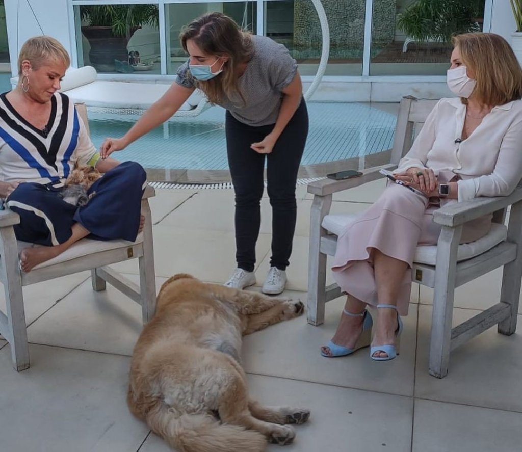 A maravilhosa Renata Capucci entrevistou Xuxa para o Fantástico e publicou imagens dos bastidores da conversa com a loira , que aconteceu em sua casa, no Instagram. "Passamos uma tarde deliciosa na companhia da rainha! Quando vimos, já era noite! Ela vai estar dia 29 de agosto no 'Show da vida'! Já aciona um lembrete agora pra não esquecer!", explicou Renata, que contou com a companhia da equipe formada por Maria Scodeler e André Nascimento."Eu e minha produtora tchop, Maria Scodeler, gamamos em Dana e em Doralice! Catioras lindas da Xuxa", contou Renata sobre as cadelas da rainha dos baixinhos em seu perfil do Instagram.