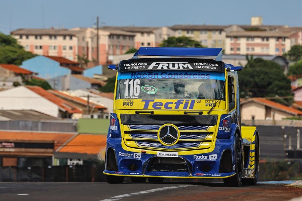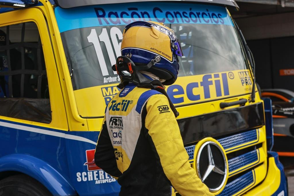 Arthur Scherer levou a Racon Consórcios ao pódio nas duas corridas válidas pela oitava e penúltima etapa da Copa Truck 2025, disputada neste domingo (19) no Autódromo Internacional Ayrton Senna, em Londrina (PR). Com um segundo lugar na primeira corrida e um quarto na segunda, o piloto do caminhão #116 manteve a diferença de apenas sete pontos para o líder da tabela da categoria Super Truck Elite, Pedro Perdoncini, que venceu a corrida 1 e terminou a prova complementar na oitava posição. Largando em terceiro, o piloto patrocinado pela Racon Consórcios assumiu a segunda posição logo nas primeiras voltas, atrás de Perdoncini, mas chegou a ser ultrapassado por Nic Giaffone, que largou da pole position. Na abertura da última volta, Scherer se posicionou melhor na entrada da reta principal e recuperou o segundo lugar, garantindo mais um pódio na temporada.