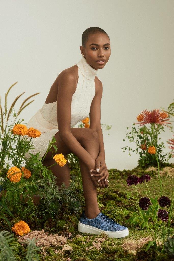 Para a família com estética mais feminina e leve, a grife criou especialmente para esta coleção um jeans exclusivo com a estampa em tons de azul, que combina diferentes flores. Seguindo o mood, os detalhes também foram pensados para incorporar um toque girly, como fivelas delicadas e laços, em modelos românticos, como o mary jane.