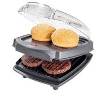 Uma dica excelente nesse sentido, é o Grill Burguer 2 em 1 com Estufa, da Oster, uma mão na roda para fazer um hambúrguer completo. Enquanto a grelha prepara as carnes, a estufa vai esquentando os pães, assim fica tudo quentinho e saboroso. Com revestimento antiaderente e design inclinado, os alimentos não grudam e nem acumulam gordura durante o preparo. Compacto e fácil de guardar, cabe em qualquer cozinha.
