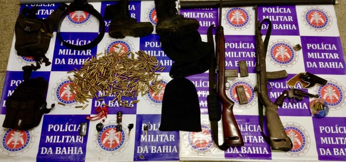 O trio assumiu que praticava assaltos na Bahia e em estados vizinhos e levou os militares até a casa usada como esconderijo, naquele mesmo bairro. Dentro do imóvel foram encontrados dois fuzis, 402 munições, capuz, coturno, celulares e uma porção de maconha. Além disso, na frente da residência, três carros roubados modelos Hilux, Renegade e Frontier foram apreendidos.